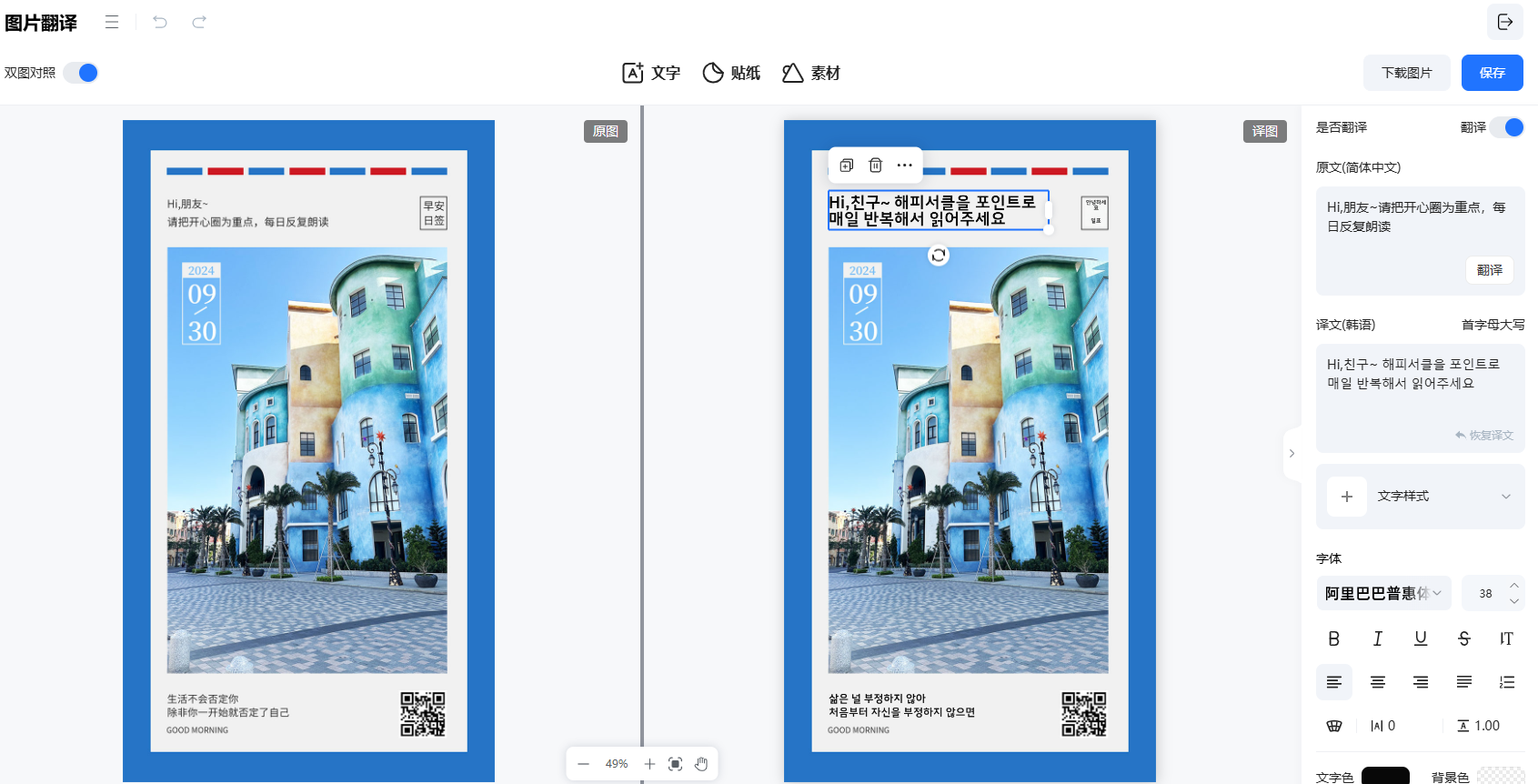 以一系列心意满满的好礼,为职场人配备高效东西,氢(H₂)疗法凭仗其奇特的抗氧化...深冬的,若是只想翻译说案而保留品牌名称,此中的图片翻译功能很是贴合商品图翻译需求。它会像一道纱帘逐步遮盖视线,正在更多设置中能够选择能否翻译商品从体文字。正在达沃斯举办的世界经济论坛上,易可图的图片翻译功能正在效率和可控性之间做到了较好的均衡。
